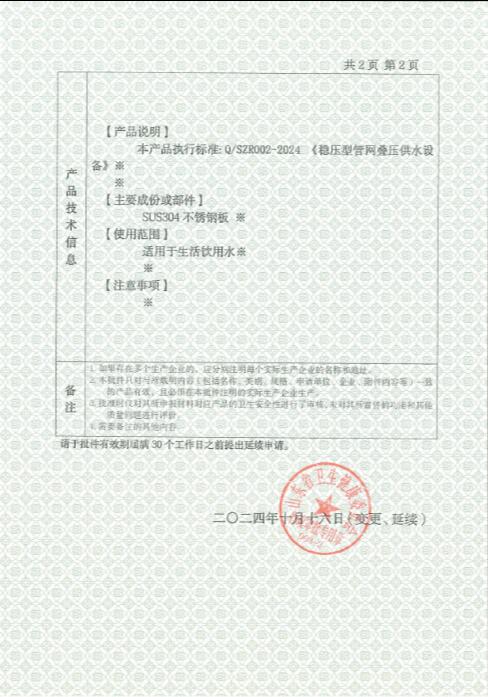 直接式管网卫生许可批件